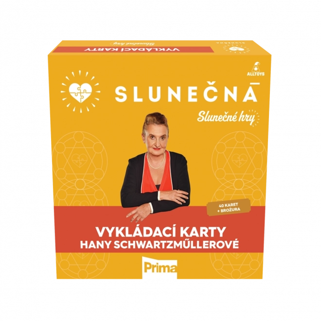 Sáhněte po vykládacích kartách Slunečná, když hledáte jemné nasměrování, inspiraci nebo povzbuzení. Karty vycházejí z výkladů Hany Schwartzmüllerové, věštkyně známé ze seriálu Slunečná, a jsou ideální pro krátké každodenní rituály i hlubší osobní zamyšlení.