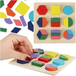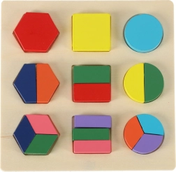 Tato skvělá dřevěná skládačka umožňuje dětem procvičovat si logické myšlení a rozpoznávání tvarů. Hra je založena na jednoduchém principu přizpůsobení tvarů do příslušných otvorů, což přispívá k rozvoji kognitivních schopností dítěte. Vhodné pro učení názvů barev a základů matematiky, protože skládačka zahrnuje různé tvary a barvy pro stimulaci vizuálních dovedností.