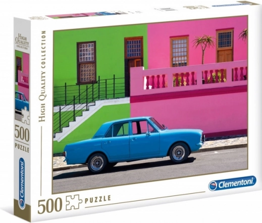 Objevte krásu klasického modrého vozu na pozadí barevných městských domů. Toto kvalitní puzzle 500 dílků zaujme sytými barvami a detailním potiskem, díky kterému bude výsledný obraz působivou dekorací interiéru. Ideální dárek pro milovníky retro aut i puzzle nadšence.