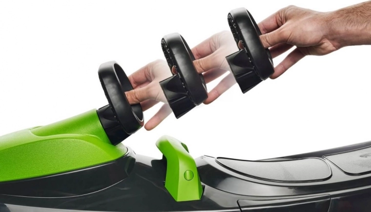 Automatický navíjecí mechanismus tažného lana usnadňuje přesuny do kopce a udržuje pořádek.