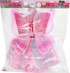 Velká růžová křídla s bílými vzory připomínají skutečného motýla. Perfektní pro kostýmy a převlekové hry.