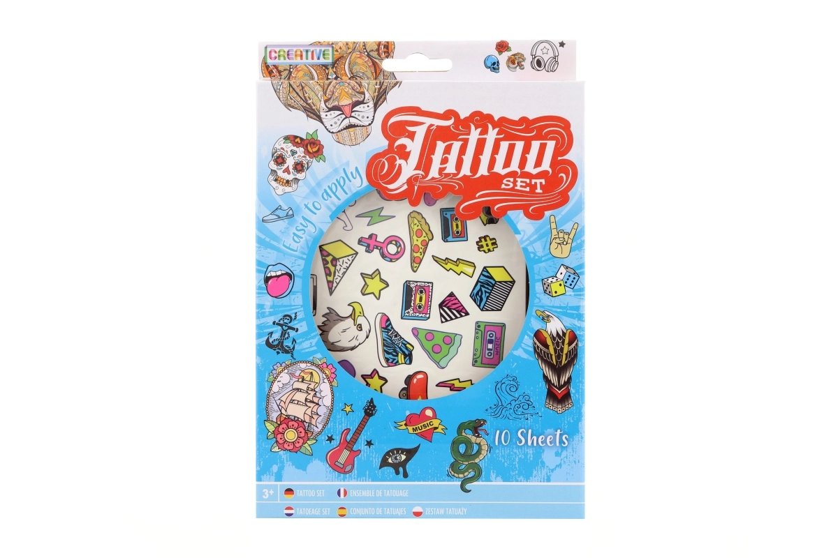 Objevte kreativní stránku s touto tetovací sadou, která obsahuje 10 archů plných vzrušujícího tetování pro holky i kluky. Užijte si snadnou aplikaci a nezapomenutelnou zábavu pro děti.