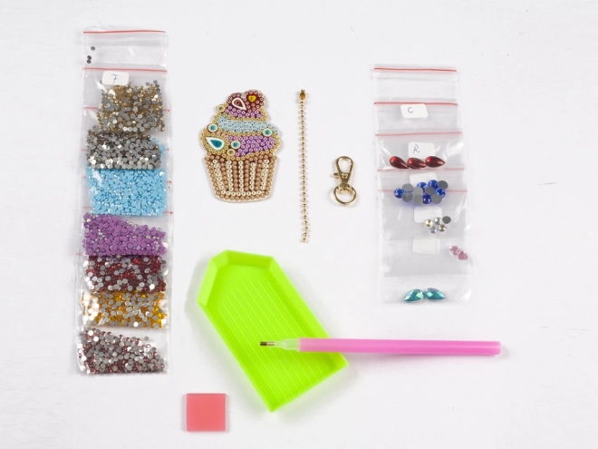 Vytvořte jedinečnou cupcake klíčenku s pestrými kamínky. Tato zábavná dekorace je ideální pro přidání trochu sladkosti každodennímu životu.