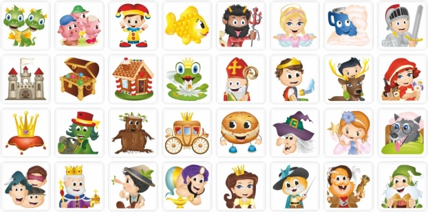 Barevné motivy princezen, rytířů, draků a dalších pohádkových postav děti nadchnou a usnadní hledání dvojic.