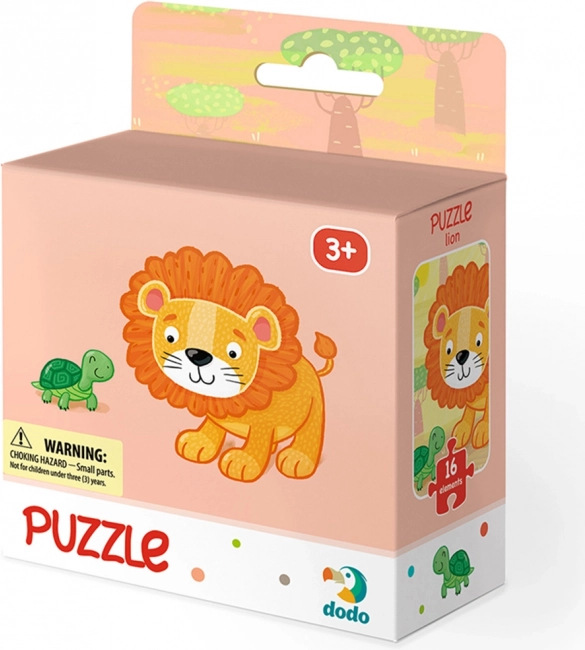 Zábavné dětské puzzle s motivem lva potěší malé stavitele od 3 let. Obsahuje 16 dílků a po složení má rozměr 22 × 22 cm – ideální pro první skládání a rozvoj jemné motoriky a logického myšlení.