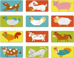 Zábavné a učící puzzle pro nejmenší: 12 dvojic s motivy domácích zvířátek, ideální pro první skládání. Velké a pevné dílky o tloušťce cca 3 mm usnadňují manipulaci a rozvíjejí jemnou motoriku, logiku a vnímání tvarů.