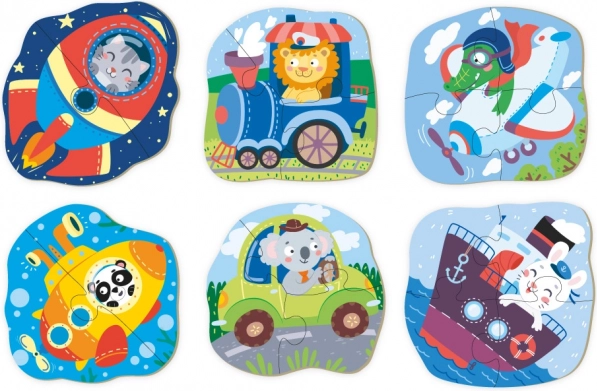 Tato sada obsahuje několik malých obrysových skládaček s motivy zvířátek a dopravních prostředků. Díky různému počtu dílků (2–4) děti postupují krok za krokem, získávají jistotu a radost z úspěchu. Kompaktní rozměr 13 × 13 cm je ideální na doma i na cesty.