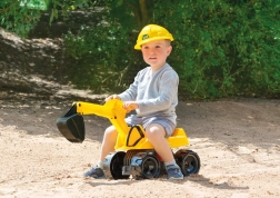 Děti si pohodlně sednou na stroj a mohou realisticky „pracovat“ v písku – ideální do pískoviště i na zahradu.