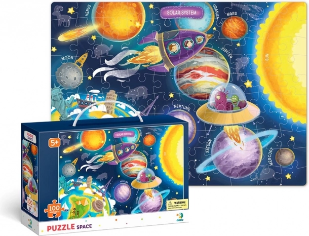 Objevte kouzlo kosmu s tímto vzdělávacím puzzle. Díky 100 dílkům a barevnému zobrazení sluneční soustavy s popisy planet je skládání nejen zábavné, ale i vzdělávací. Velký formát obrázku podporuje rozvoj jemné motoriky, logického myšlení a poznávání vesmíru.