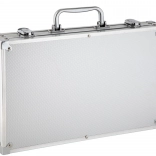 Tento kovový kufřík je vybaven pevným držadlem a bezpečnými přezkami, což umožňuje snadné přenášení a bezpečnou organizaci všech potřeb.