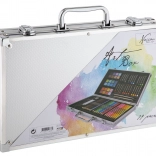 Souprava obsahuje 79 kusů, včetně vodových barev, pastelek, štětců, gumy a ořezávátka pro veškeré umělecké potřeby.