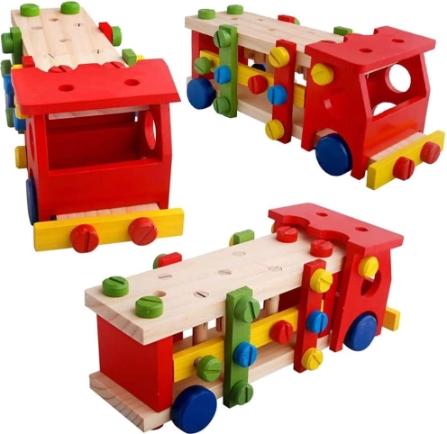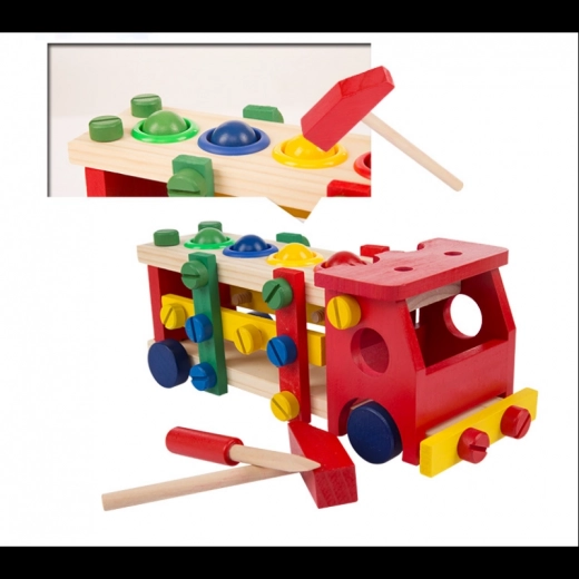 Vzdělávací a interaktivní hračka v podobě dřevěného autíčka rozvíjí motorické, poznávací schopnosti. Podporuje také kreativní stránku dítěte a soustředění.
