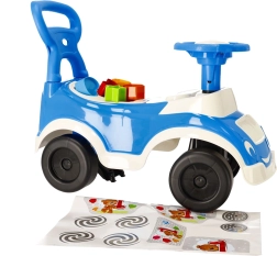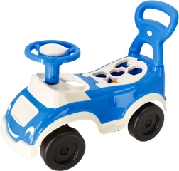 Praktické odrážedlo 4v1 Pilsan v modré barvě kombinuje jízdu, chodítko, tlačítko a vzdělávací tvarový sorter. Nabízí bezpečnou opěrku zad s možností odejmutí, mechanický klakson, úložný prostor pod sedadlem a kvalitní, zdravotně nezávadné materiály. Podporuje motoriku, rovnováhu a koordinaci dětí při zábavné jízdě doma i venku.