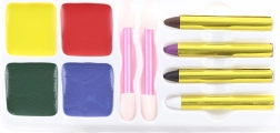 Tato sada pro malování na obličej a tělo nabízí vše, co potřebujete k rychlé a efektní proměně. Díky kombinaci 4 krémových barev a 4 barevných tužek vytvoříte přesné linie, jemné stíny i výrazné motivy. Barvy se snadno nanášejí pomocí přiložených aplikátorů, na větší plochy lze použít houbičku.