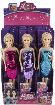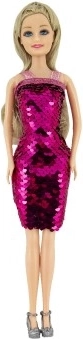 Tato elegantní panenka je připravena na večírek i módní přehlídku. Šaty zdobené oboustrannými flitry přinášejí okamžitou zábavu – jednoduchým přejetím ruky změníte barevný efekt a vytvoříte nový styl během vteřiny. Pevné plastové tělo umožňuje stabilní postoj a snadné převlékání.