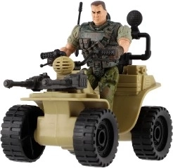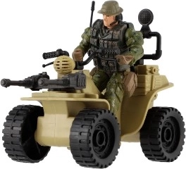 Tato čtyřkolka nabízí realistické detaily včetně kamuflážního oblečení vojáka a velkých černých pneumatik.