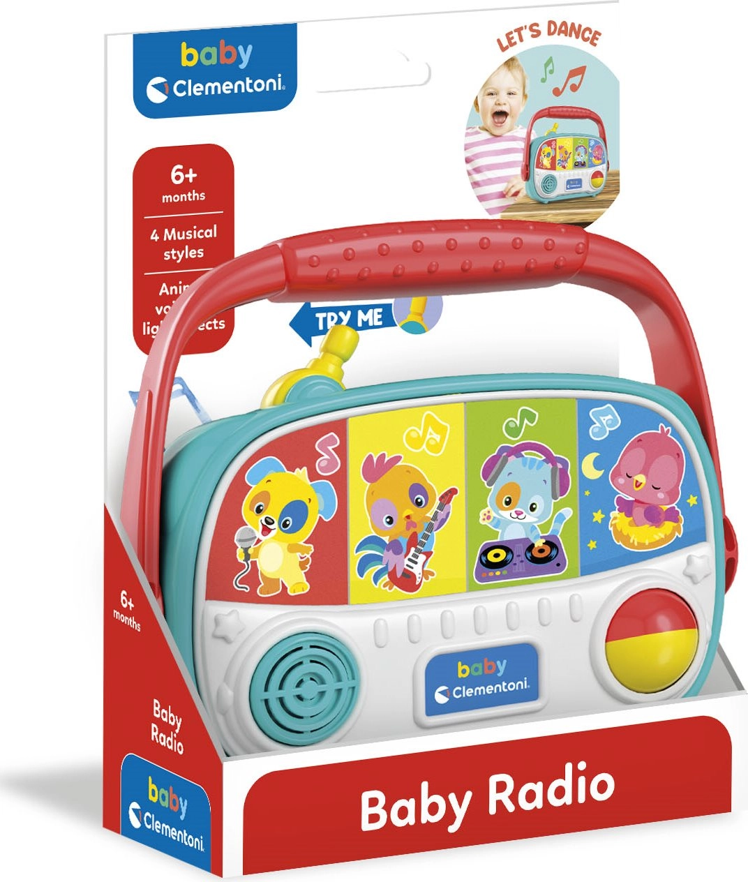 Dětské rádio Baby Clementoni přináší malým objevitelům zábavný svět zvuků a melodií. Díky pestrým barvám a snadnému ovládání si děti rychle osvojí přepínání oblíbených melodií a budou přirozeně rozvíjet hudební cítění i koordinaci pohybů. Bezpečné materiály a promyšlený design jsou ideální pro každodenní hraní doma i na cestách.