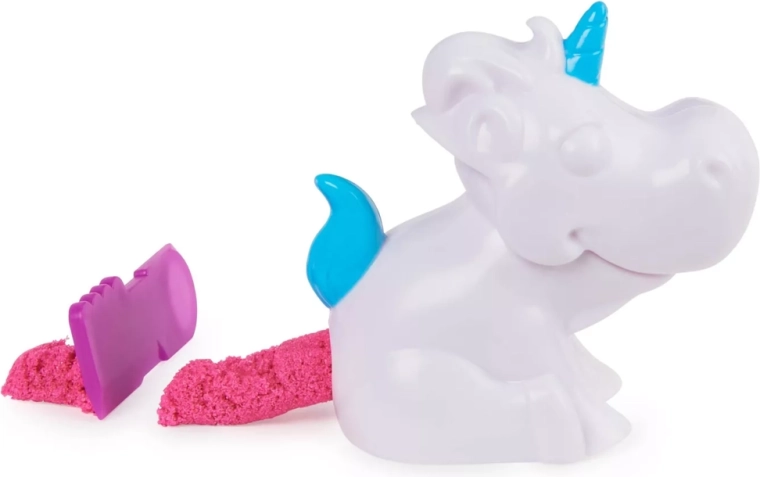 Kinetický písek Kinetic Sand – překvapení přináší jedinečný senzorický zážitek, který rozvíjí jemnou motoriku, kreativitu i představivost. Každé balení skrývá jinou barvu písku a drobné doplňky, díky nimž si děti vyzkoušejí nové techniky tvarování a hraní – od otiskování do forem až po krájení a mačkání.