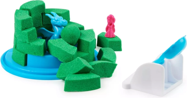 Kinetický písek se snadno krájí, mačká a lisuje do forem, přičemž se nelepí a dobře drží tvar.