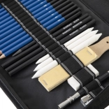 Skicovací sada je úhledně uspořádána v uzavíratelném pouzdře, které zajišťuje, že všechny nástroje budou na svém místě a snadno přenositelné. Ideální pro začátečníky i profesionální umělce.