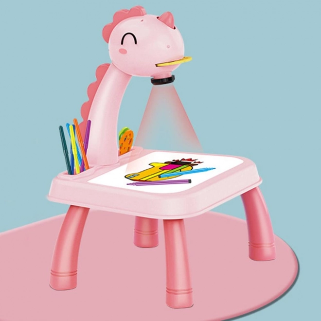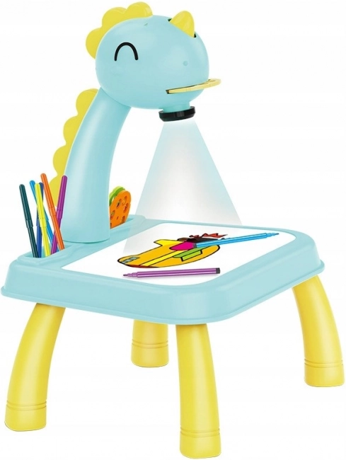 Do hlavy dinosaura se vkládají posuvné kotouče. Po zapnutí projektoru se rozsvítí kontrolka a po vložení disku se zobrazí diapozitivy. Diapozitivy lze promítat na podstavec projektoru a obkreslovat je do sešitu nebo přímo na podstavec.