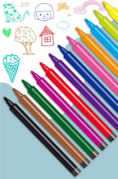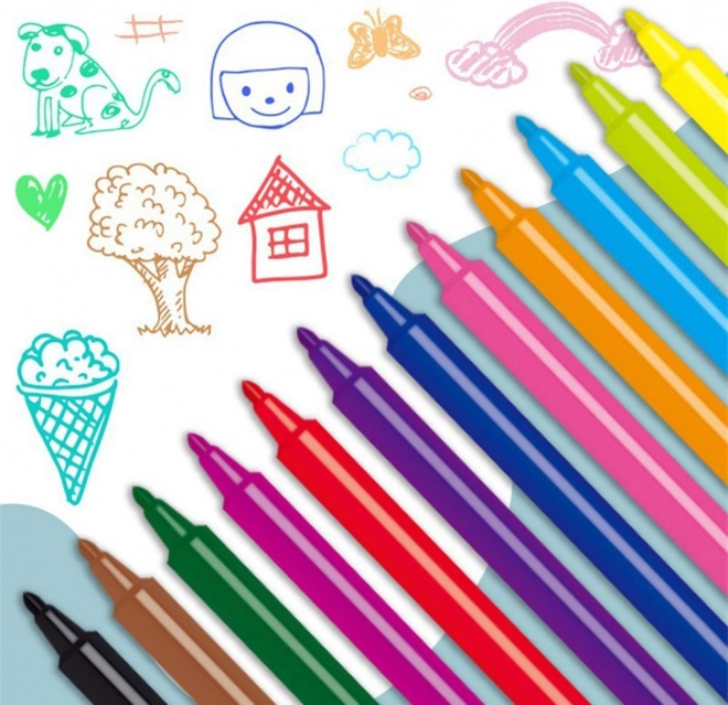 Na podklad můžete malovat přímo fixami, kresby se mažou hadříkem, který je rovněž součástí sady,