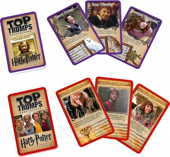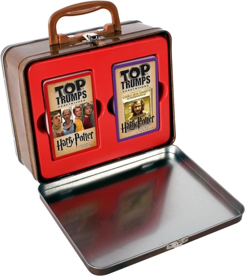 Vydejte se na kouzelnou cestu prostřednictvím hry Top Trumps s exkluzivní licenci Harryho Pottera. Tato hra vám umožní porovnávat vlastnosti vašich oblíbených postav a zároveň rozšiřovat svou sbírku. Speciální edice obsahuje dva balíčky karet zaměřené na filmy Ohnivý pohár a Vězň z Azkabanu, zabalené v elegantním kovovém nebelvírském kufříku.
