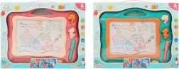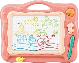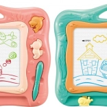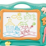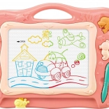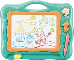 Tato barevná magnetická tabulka umožňuje dětem tvořit zcela bez nepořádku – stačí kreslit přiloženým perem a jedním tahem posuvníku vše snadno vymazat. Díky kompaktnímu tvaru s rukojetí si ji děti vezmou kamkoli – do auta, na návštěvu i na dovolenou.