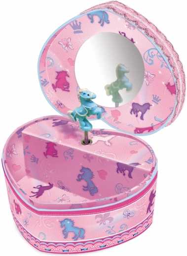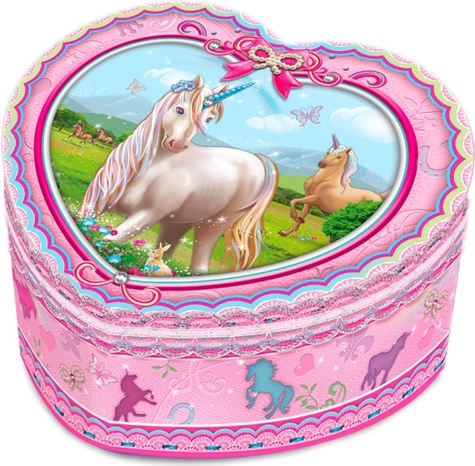 Tato krásná dětská šperkovnice s motivem jednorožce a tvarem srdce je skvělým doplňkem do pokojíčku. Po otevření se rozezní příjemná hudba, která zpříjemní ukládání prstýnků, náramků či dalších cenností. Kvalitní materiál a pečlivé zpracování zajišťují dlouhou životnost a bezpečné uložení drobností.