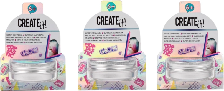 Třpytivá vlasová řasenka Create It! je hravý doplněk pro každou malou stylistku. Díky praktickému kartáčku nanesete třpytky přesně tam, kde chcete, a vytvoříte okamžitě zářivý efekt. Míchejte a vrstvěte barvy pro ještě výraznější look.