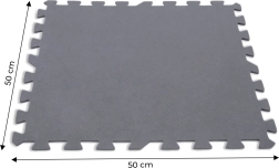 Pěnová podložka pod bazén určená pro ochranu dna bazénu před poškozením. Vyrobená z měkké a pružné pěny s tloušťkou 0,5 cm připomínající puzzle. Díky konstrukci lze podložky kombinovat podle potřeby a přizpůsobit různým velikostem bazénů. Rozměry jedné skládačky jsou 50 × 50 cm a v balení je celkem 8 podložek. Spojením všech vytvoříte ochrannou plochu o rozloze 1,9 m2. Pěna může být použita jak pod rámové bazény, tak i pod podpůrné a nafukovací bazény. Poskytuje účinnou ochranu proti proražení dna a zároveň dokonale izoluje bazén od země, díky čemuž nejsou cítit nerovnosti, kameny ani jiné prvky, zaručující tak plný komfort použití.