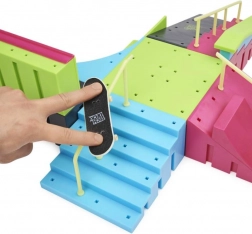 Součástí jsou 2 fingerboardy TECH DECK a 4 karty triků – naučte se základy i pokročilé kombinace na railu a rampách.