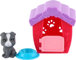 Součástí je miska na krmení a figurka štěňátka. Domeček zdobí mašlička a reliéfní tlapičky, které dodávají hře šmrnc.