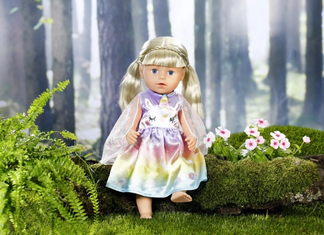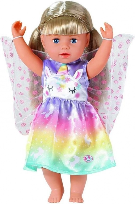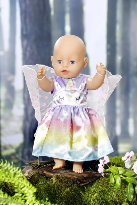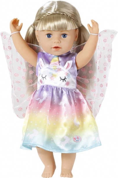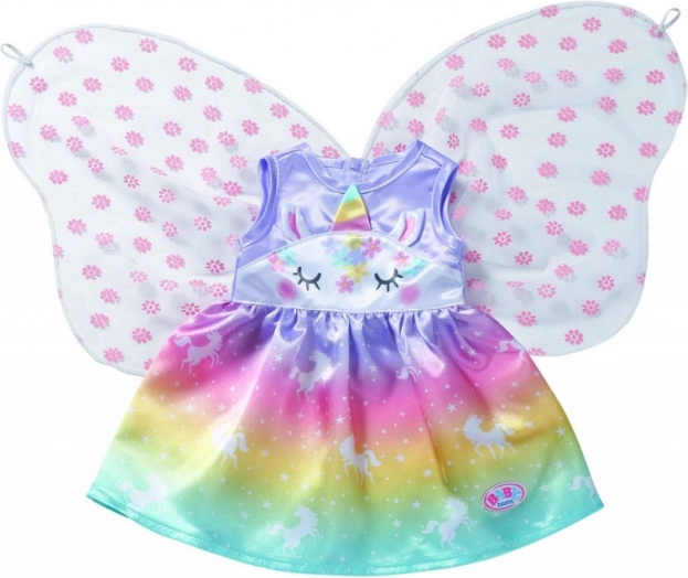 Proměňte každé hraní v pohádkové dobrodružství. Tyto šaty pro panenku BABY born ve velikosti 43 cm (vhodné i pro 39–46 cm) září duhovým přechodem, motivy jednorožců a jemnými křídly. Díky kvalitním materiálům vydrží spoustu převlékání, čajových dýchánků i královských průvodů.
