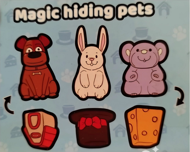 Na výběr jsou 3 druhy: myš ⇄ sýr, králík ⇄ klobouk a pes ⇄ bouda. Díky malým rozměrům jsou hračky skvělé do batůžku, do auta i do čekárny. Měkký gumový materiál je příjemný na dotek a odolný pro každodenní hraní.