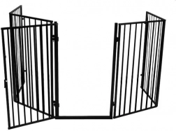 Praktická bezpečnostní zábrana ke krbu chrání děti i domácí mazlíčky před horkým povrchem a otevřeným ohněm. Díky pěti segmentům na pantech ji snadno přizpůsobíte prostoru, má snadnou montáž do zdi, pojistku proti náhodnému otevření a je kompatibilní s většinou krbů. Robustní ocelová konstrukce v černé barvě, celková šířka 304 cm a výška 74,5 cm poskytují spolehlivou ochranu v obývacím prostoru.