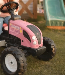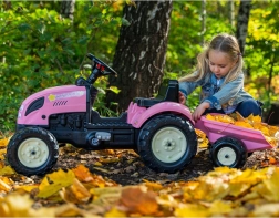 Dětský traktor FALK Country Star potěší všechny malé řidiče, kteří milují pohyb a hraní na čerstvém vzduchu. Konstrukce z odolného plastu zajišťuje dlouhou životnost a bezpečné používání, zatímco řetězový pohon na zadní nápravu poskytuje plynulou jízdu. Díky odnímatelnému přívěsu si děti mohou vozit hračky či drobnosti a užít si realistický zážitek z řízení.