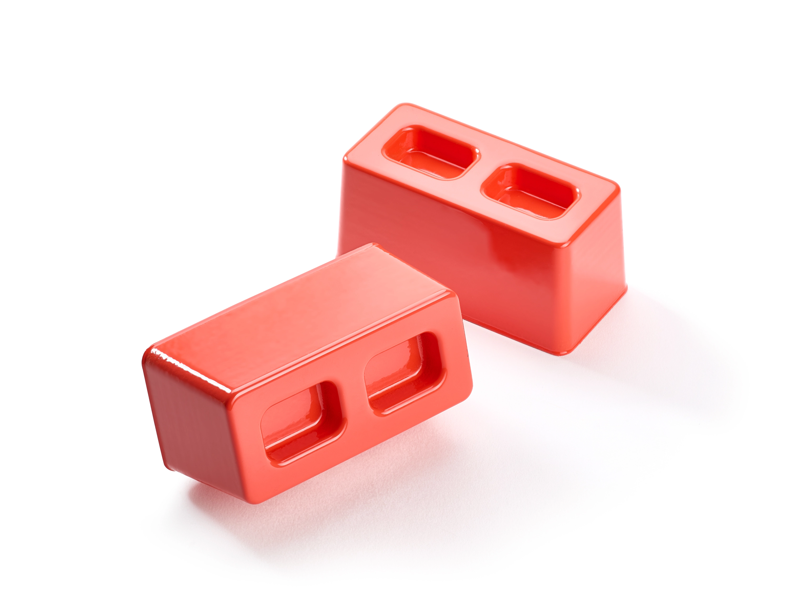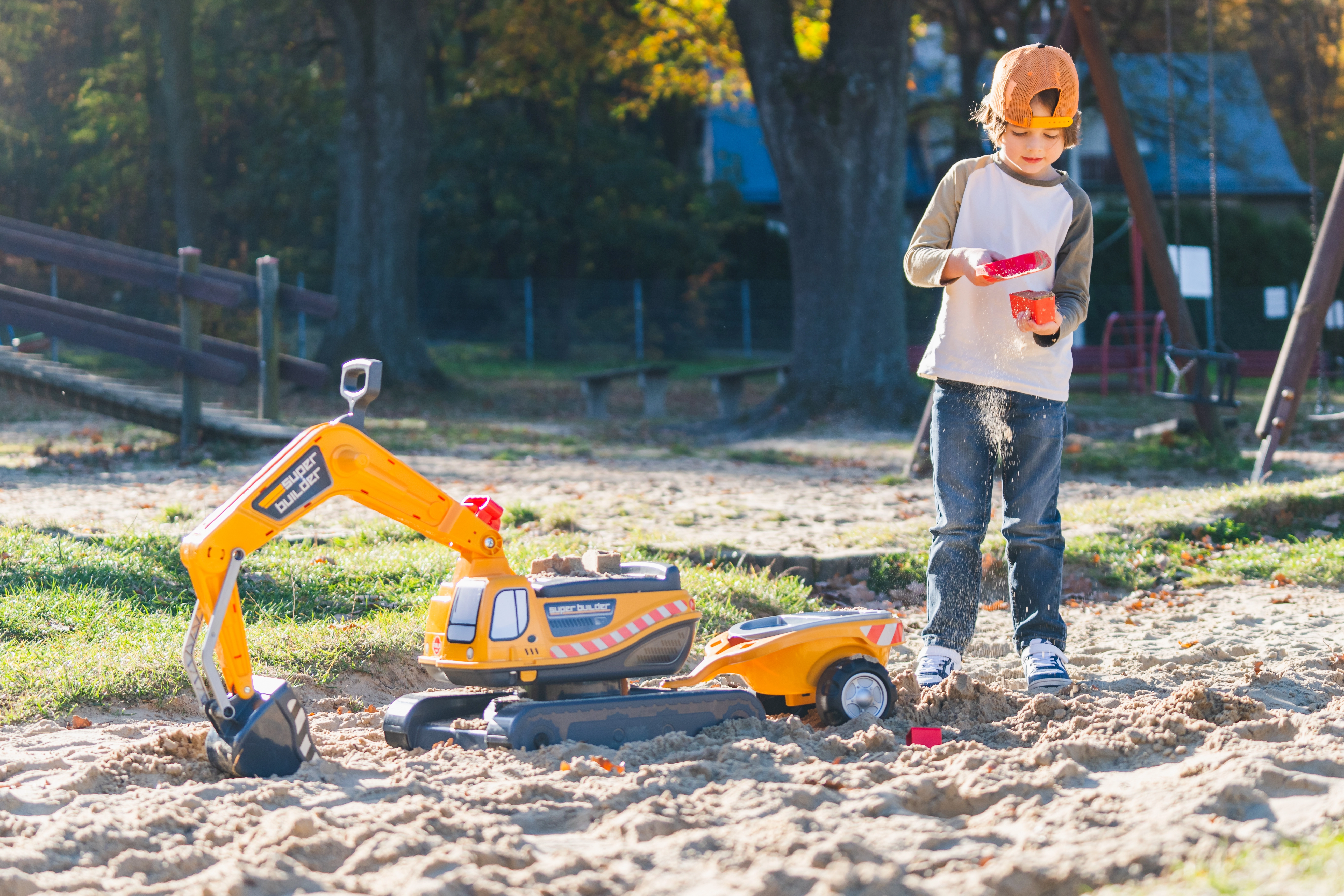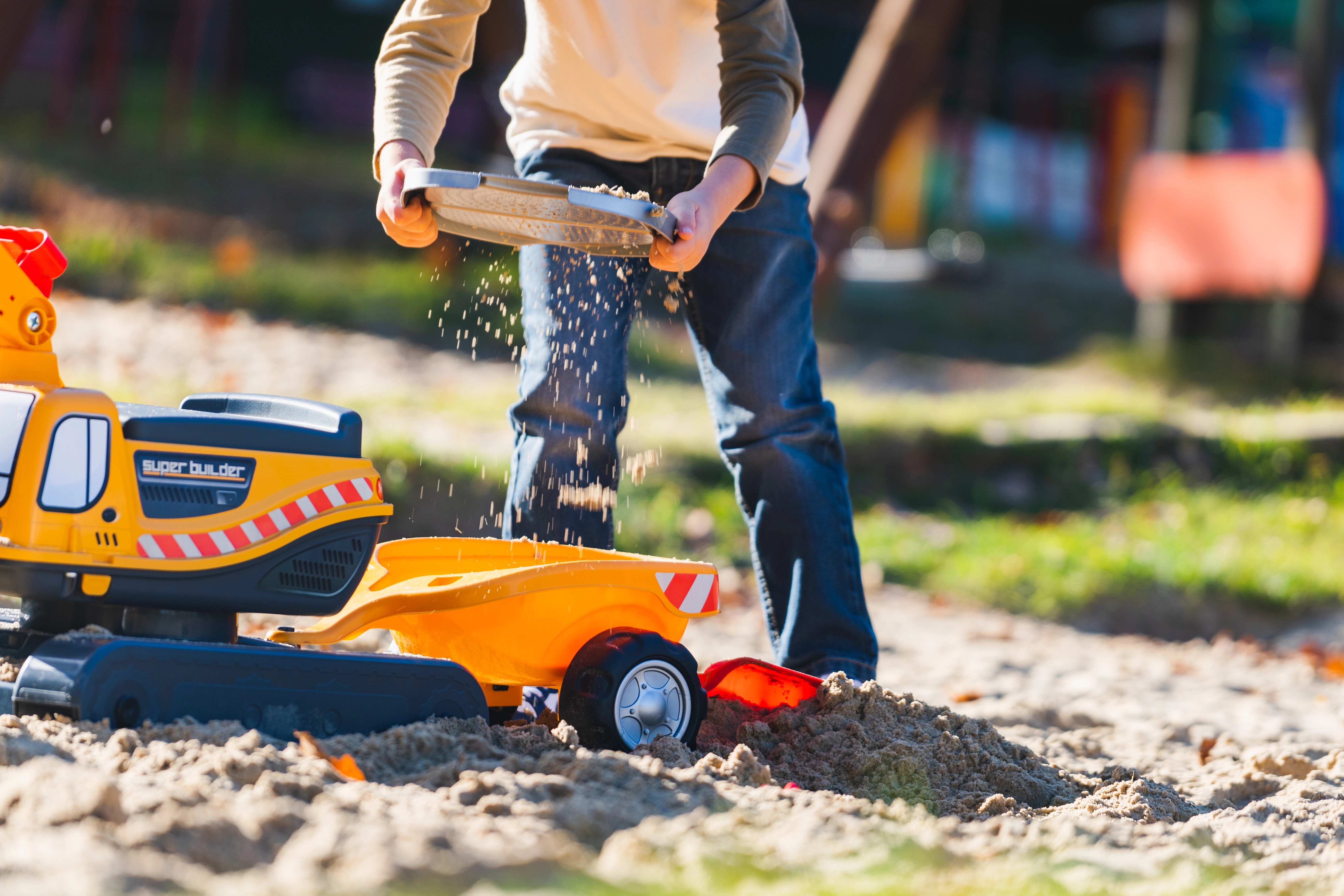 pásů, přívěsem a hracím setem na písek – 2× bábovka ve tvaru cihly,