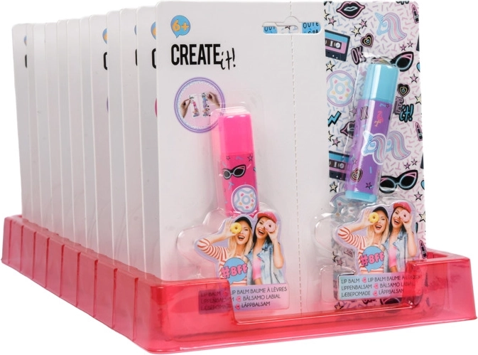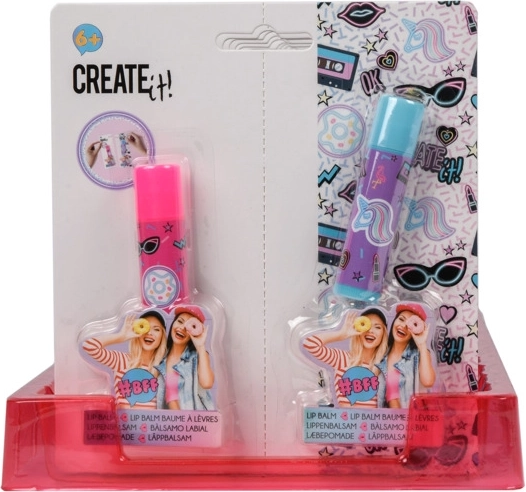 Dopřejte svým rtům jemnou péči a zábavný look s balzámem na rty Create It! BFF. Vesele ilustrovaný obal a hravé motivy z něj dělají dokonalý doplněk do kabelky. Dostupný ve dvou barvách – růžové a modré (výběr probíhá náhodně). Skvěle hydratuje a zjemňuje rty, ideální pro každodenní použití.