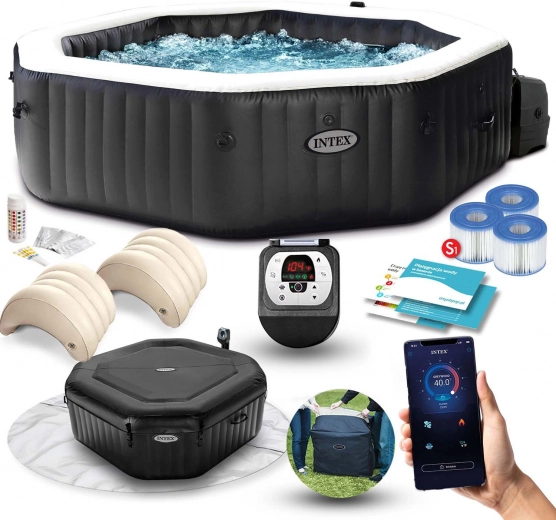 Užijte si domácí wellness kdykoli během roku s nafukovací vířivkou INTEX pro 4 osoby. Nabízí 120 vzduchových trysek pro jemnou hydromasáž, ohřev vody až na 40 °C, odolnou konstrukci s Fiber‑Tech technologií a ovládání přes aplikaci v telefonu. Součástí je bohatá výbava včetně termokrytu, hlavových opěrek, filtračních vložek a podložky.