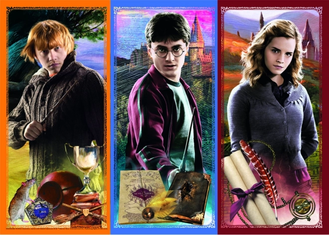 Licencovaný design s hrdiny Harrym, Ronem a Hermionou potěší každého fanouška. Kvalita značky Trefl zaručuje krásnou a detailní ilustraci.