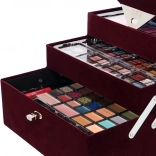 Rozkládací patra a přihrádky zpřístupní všechny produkty během okamžiku. Každý odstín i nástroj má své místo pro rychlé a přesné líčení.