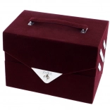 - Sametový kufřík v tmavě vínové barvě s madlem