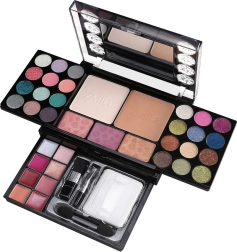 Objevte kompaktní a elegantní paletku, která v sobě spojuje vše pro kompletní make-up. Široká škála odstínů očních stínů, krémových lesků i třpytek umožňuje vytvořit jemné denní i výrazné večerní líčení. Díky zabudovanému zrcátku a přiloženým aplikátorům máte vše po ruce, ať jste kdekoli.