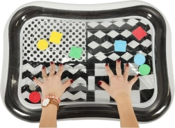 Podložka nabízí bohatou smyslovou stimulaci s kontrastními barvami a pohybujícími se barevnými tvary uvnitř. Skvěle podporuje vizuální a hmatový vývoj.