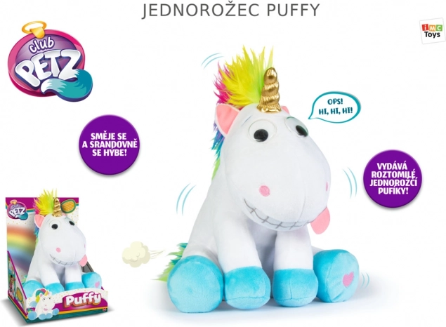 Puffy, interaktivní jednorožec, přináší hodiny zábavy a smíchu do vašeho domova. Tento jednorožec je ideální společník pro děti, které chtějí mít svého vlastního magického tvora, který reaguje na jejich dotek. Puffy nejenže vypadá báječně, ale také nabízí unikátní interaktivní funkce: