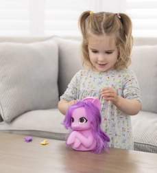 Dlouhé fialové vlasy princezny Pipp jsou připraveny na úpravy a styling podle vašich představ.