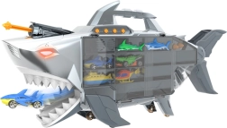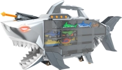 Vydejte se na dobrodružství s žraločím transportérem, který pojme až 24 autíček a nabízí světla, zvuky a otevírací čelisti. Díky rukojeti a kolečkům je snadno přenosný, nechybí rychlostní rampa a odpalovač raket ani bohaté příslušenství pro okamžitou hru.