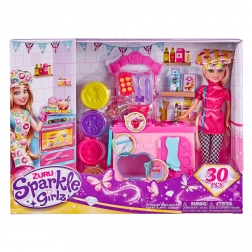 Hrací set Sparkle Girlz pekařka je ideální pro malé cukrářky a pekaře, kteří milují kuchařská dobrodružství. Panenka je připravená na pečení a díky bohaté sadě příslušenství mohou děti napodobovat skutečné kuchyňské činnosti – od válení těsta až po zdobení výtvorů.