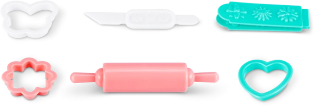 Součástí balení je 30 praktických doplňků, jako jsou formičky na pečení, váleček a různé dekorace, které podporují rozvoj jemné motoriky, představivosti a role-play. Set je skvělým dárkem pro děti, které rády tvoří a hrají si na pekařku.